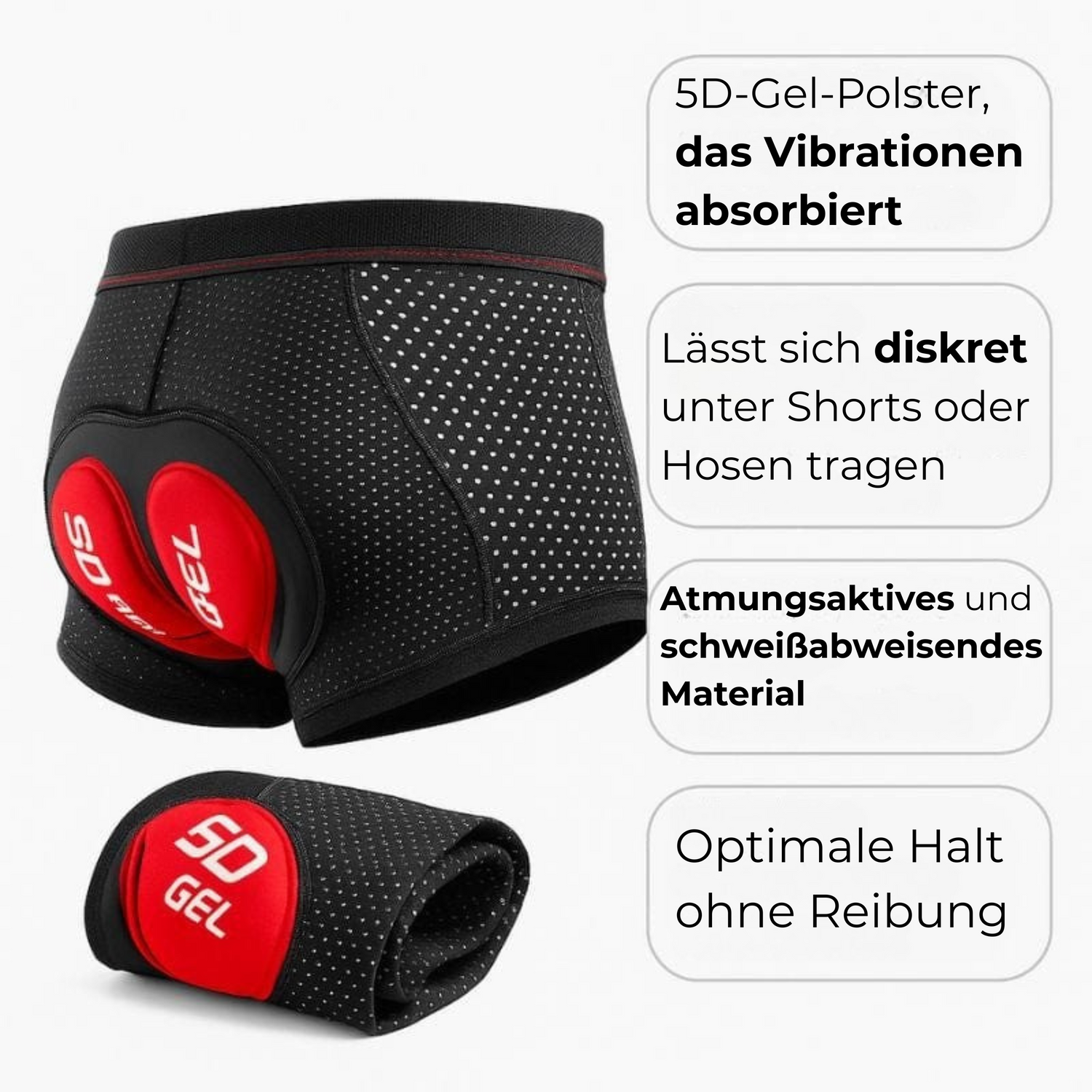 Dank seiner 5D-Anti-Vibrations-Polsterung absorbiert dieser Boxer jede Erschütterung und schützt effektiv das Steißbein, den unteren Rücken – und vor allem die empfindlichsten Stellen.