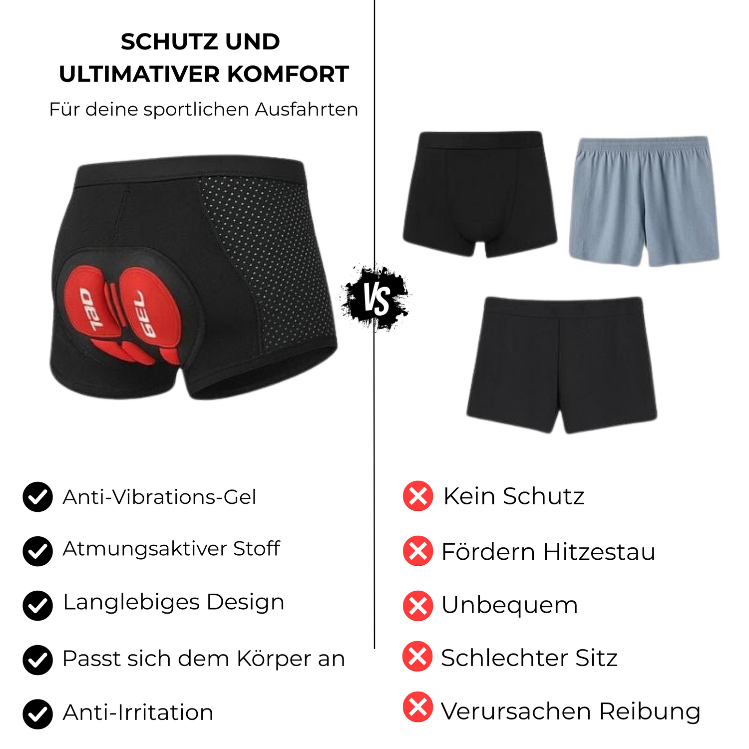 Ja – genau darum geht es. Diese Unterwäsche wurde für Männer entwickelt, die genug haben von Schmerzen, Reibung und dem unangenehmen Gefühl nach dem Radfahren.