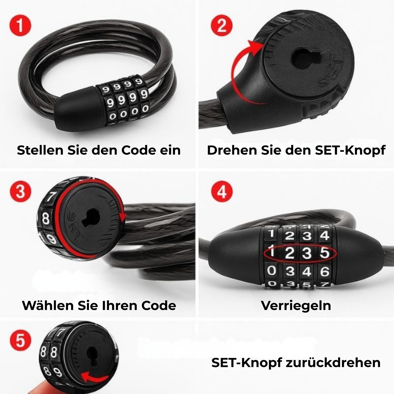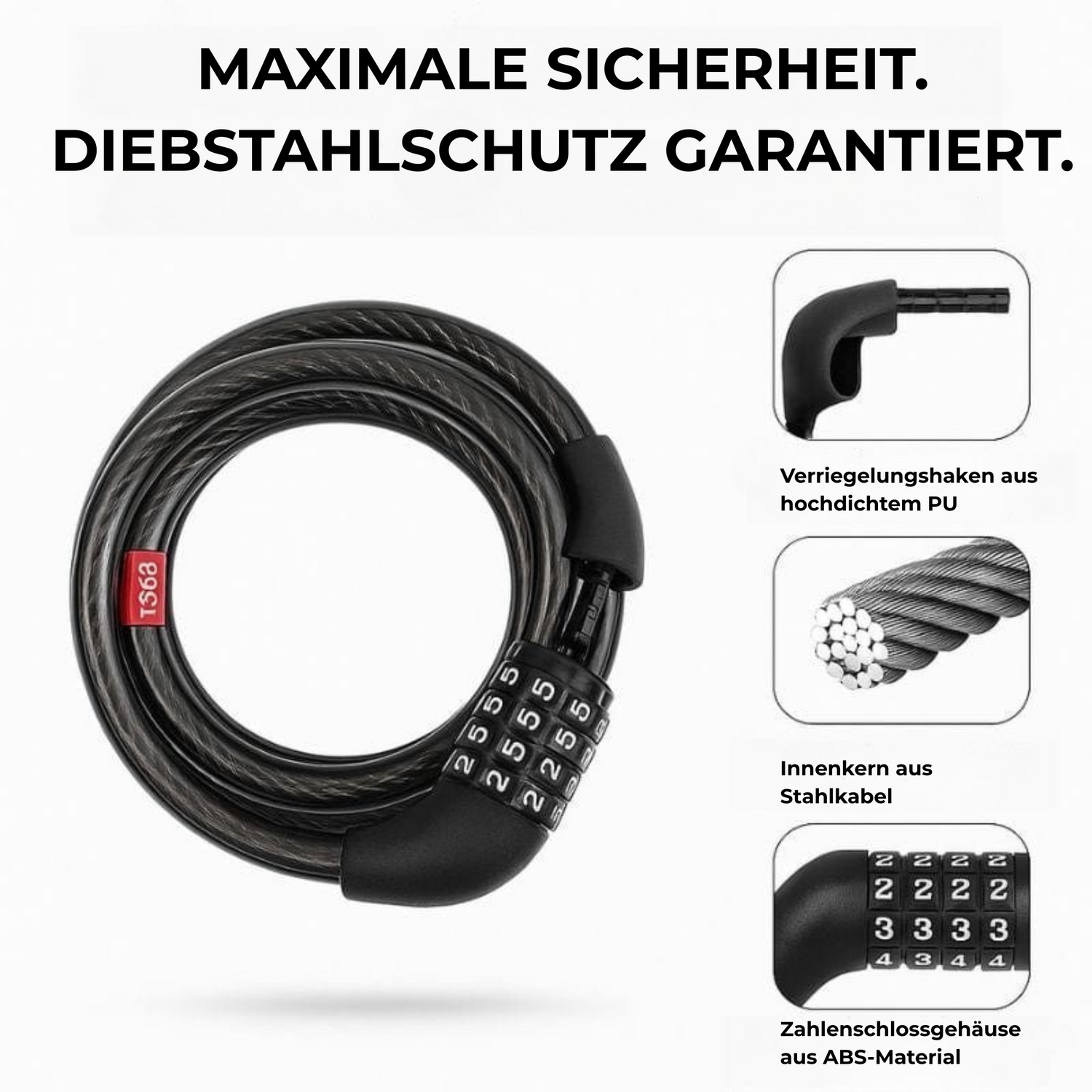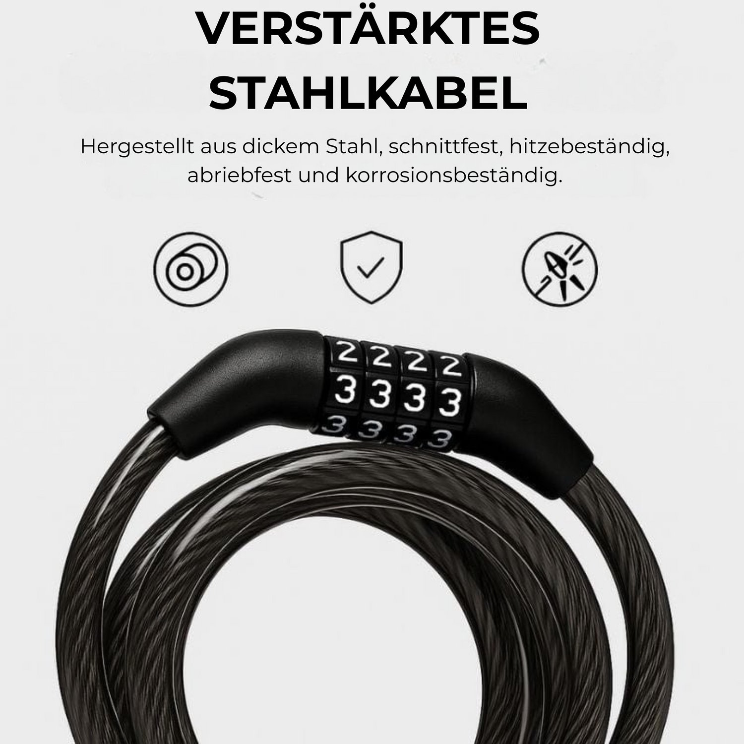 Für alle, die leicht und flexibel unterwegs sind: Das 4-stellige Zahlenschloss bietet dir die Freiheit ohne Schlüssel – und die Sicherheit eines ummantelten Stahlkabels, das deinen Rahmen vor Kratzern schützt.
